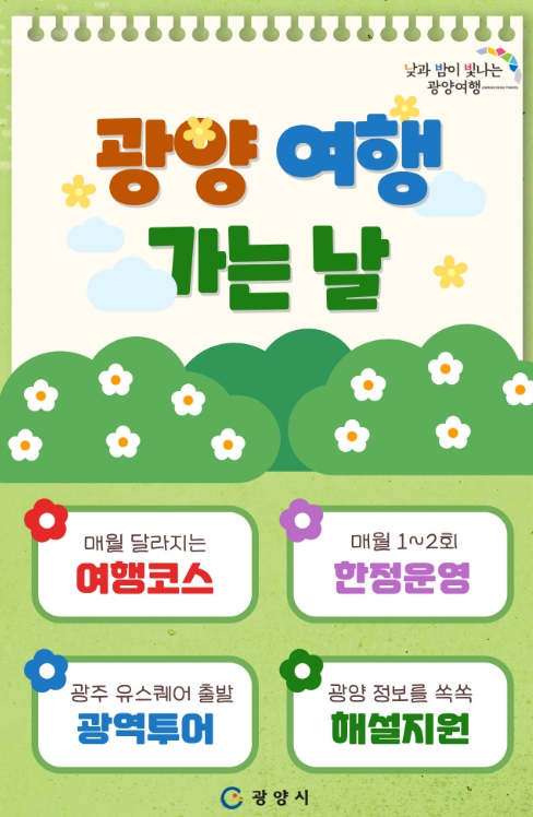 광양시티투어 코스와 운영 일정 등 자세한 사항은 광양시 문화관광 누리집 ‘여행준비’ 내 ‘시티투어’ 코너에서 확인할 수 있다.