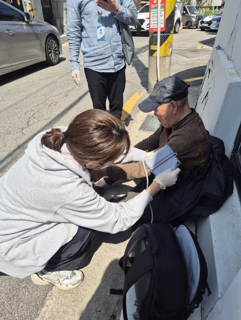![]() 장위1동 주민센터 간호사가 뇌졸중이 의심되는 어르신의 상태를 확인하고 있다 |
