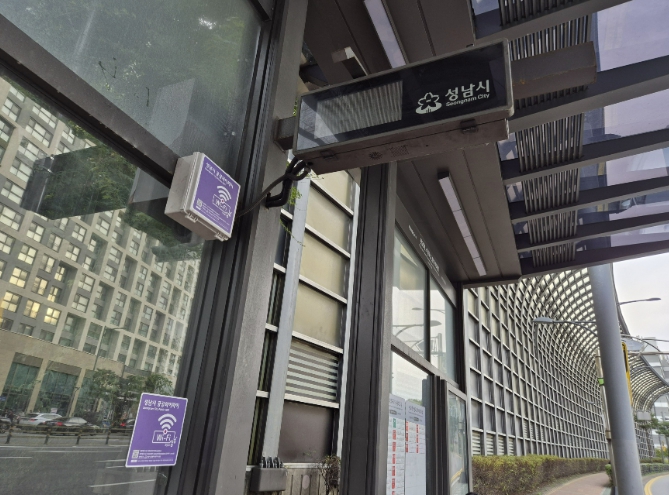 ![]() 버스정류장에 설치된 성남시 공공와이파이 모습 |