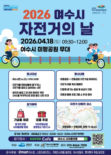 ![]() ‘2026 여수시 자전거의 날’ 행사 안내 포스터 |