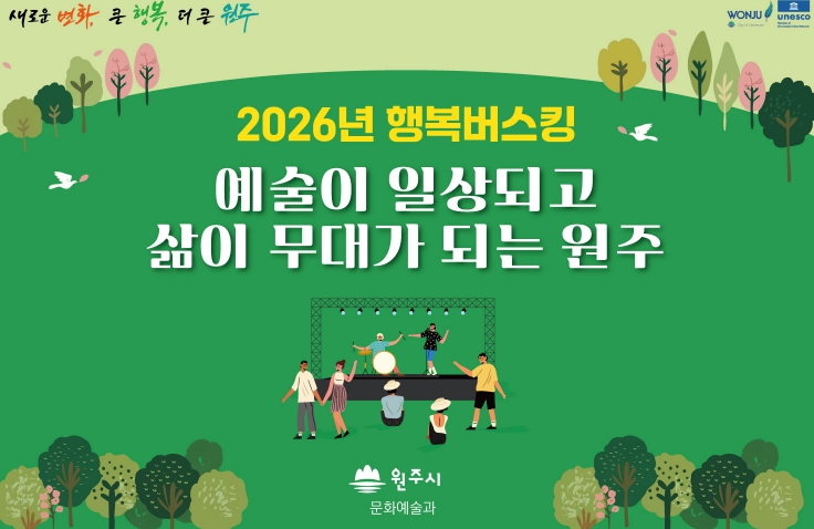 상반기 원주행복버스킹 공연팀은 공개 모집을 통해 심사를 거쳐 선발됐으며, 노래·밴드·통기타 라이브·전통무용 등 수준 높고 다양한 장르의 공연을 선보일 예정이다.