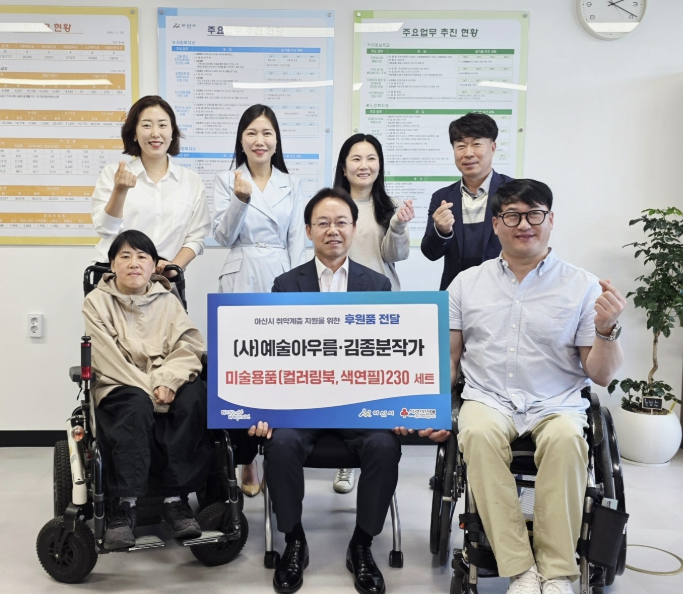 전달된 물품은 컬러링북과 색연필 등 230세트로, 아산시는 △아산시장애인복지관과 △충남장애인부모회 아산지회를 통해 지역 장애인의 정서 지원과 창작활동에 활용할 예정이다.