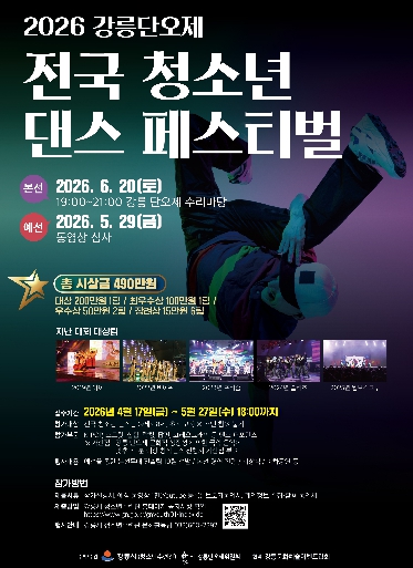 ![]() 2026 강릉단오제 전국 청소년 댄스 페스티벌 참가팀 모집 |