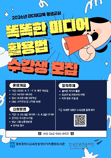 송정다가치문화도서관 강성도 관장은 “디지털 환경이 급변하는 상황에서 미디어 정보를 올바르게 해독하는 능력은 필수적이다”며 “이번 교육이 주민들의 디지털 역량을 한 단계 높이는 계기가 되길 바란다”고 말했다.