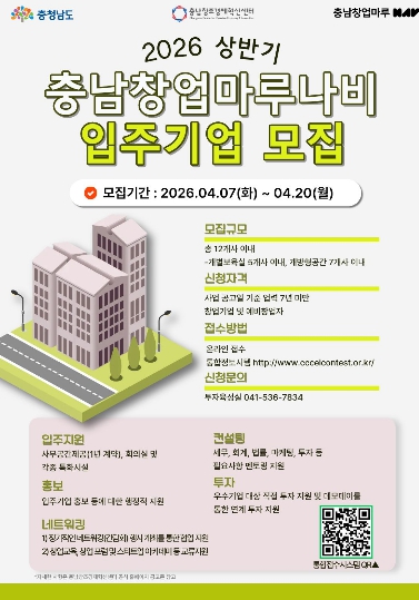 ![]() ‘2026년 상반기 충남창업마루나비 입주기업’ 모집 |
