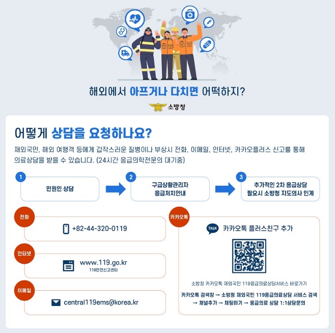 이동우 서장은 “해외에서는 의료 접근이 어려운 상황이 많다”며 “응급상황 발생 시 당황하지 말고 119응급의료 상담서비스를 적극 활용해 신속하게 도움을 받길 바란다”고 말했다.