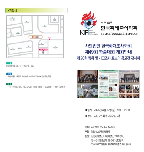 이번 학술대회는 화재 및 폭발사고 원인 조사와 관련한 연구 성과를 공유하는 자리로, 소방·경찰·연구기관 등 다양한 분야 전문가들이 참여했다.