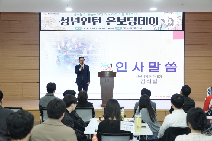 김석필 천안시장 권한대행 부시장은 “청년인턴들이 낯선 조직 환경에 신속히 안착하도록 돕는 것이 이번 프로그램의 목적”이라며 “앞으로도 청년의 안정적인 조직 적응과 고용 유지를 위해 다양한 지원 정책을 지속적으로 확대해 나갈 방침”이라고 말했다.