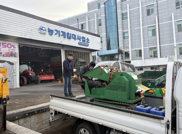 대형농기계(트랙터, 콤바인, 스키드로더)는 무상 운송으로 지원하고, 임대 농기계 현장 수리도 함께 제공한다.