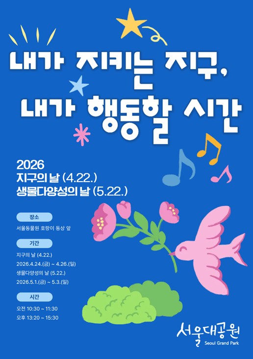 이번 행사는 봄철 나들이객이 집중되는 시기에 맞춰 4월과 5월 두 차례에 걸쳐 총 6일간 진행된다. ▲지구의 날 행사는 4월 24일부터 26일(일)까지, ▲생물다양성의 날 행사는 5월 1일부터 3일까지 각각 3일간, 서울동물원 정문 호랑이상 앞 광장에서 열린다.