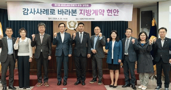 연구단체 ‘공공계약 감사연구소’ 전경문 대표 의원은 “이번 강연을 시작으로 지속적인 교육과 계약 현안에 대한 모니터링을 통해 청렴한 계약 문화가 정착될 수 있도록 노력하겠다.”고 의지를 밝혔다.