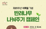 해남 최준규 기자2026. 03.11[시사토픽뉴스]광주 동구는 제81회 식목일을 앞두고 주민들이 직접 나무를 가꾸며 생활 속 환경보호를 실천할 수 있도록 오는 12일 5·18민주광장에서 ‘반려나무 나눠주기’ 캠페인을 개최한다고 밝혔다. 동구는 이날 오전 11시부터 서향나무(천리향) 1,000주를 1인 1그루씩 선착순으로 무료 분양한다. 구는 이번 행사를 통해 ‘1인 1나무 가꾸기’를 적극 홍보함으로써, 일상 속에서 기후위기 극복을 실천하고 녹색도시 조성에 기여할 것으로 기대하고 있다. 주민들이 가정과 생활공간에서 직접 나무를 돌보며 미세먼지 저감과 도시 환경 개선에...