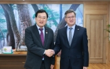 김진태 강원도지사, 유승민 대한체육회장 면담…2030년 전국체전 유치 의지 밝혀...