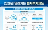 신안 최준규 기자2026. 01.06[시사토픽뉴스] 중소벤처기업부는 「벤처투자 촉진에 관한 법률」 및 하위법령(시행령, 시행규칙) 개정을 바탕으로 ’26년에 새롭게 달라지는 벤처투자 제도를 발표했다고 밝혔다. 법·제도 개편사항은 ’25년에 개정되어 시행중이거나, ’26년에 개정될'벤처 4대 강국 도약 종합대책'(’25.12)의 후속 입법 과제로, ▲벤처투자 주체의 투자 규제 개선, ▲벤처투자 세제 지원 확대, ▲벤처투자 생태계 기반 강화 등 크게 세 가지로 구분되며, 주요 내용은 다음과 같다. 1 벤처투자 환경 개선을 위한 투자 규제 완화 ① 벤처...