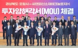 정치 최준규 기자2026. 01.19[시사토픽뉴스] 포항시와 경상북도는 19일 포항시청 대회의실에서 씨앤피신소재테크놀로지㈜와 5,000억 원 규모의 투자양해각서(MOU)를 체결했다. 이날 협약식에는 이철우 경상북도지사, 이강덕 포항시장, 김일만 포항시의회 의장을 비롯한 시도의원과 따이주푸 씨앤피신소재테크놀로지㈜ 대표이사, 엄기천 포스코퓨처엠 사장, 김동환 주식회사 피노 CEO 및 유관기관 관계자 40여 명이 참석했다. 이번 협약에 따라 씨앤피신소재테크놀로지㈜는 2026년부터 2030년까지 포항 영일만4일반산업단지 내 4만 5,198.8㎡ 부지에 ESS 및 ...