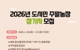 광양 최준규 기자2026. 02.23[시사토픽뉴스]광양시는 도심 속에서 농업을 체험하며 가족과 함께 건강한 여가를 보낼 수 있는 ‘2026년 도시민 주말농장’ 참가자를 2월 26일부터 3월 5일까지 모집한다고 밝혔다. 도시민 주말농장은 시민이 일정 구획의 텃밭을 분양받아 직접 작물을 재배하는 체험형 농업 프로그램으로, 농업에 대한 이해를 높이고 건강한 먹거리의 가치를 체험할 수 있도록 매년 운영되고 있다. 신청 대상은 공고일 이전 주민등록상 주소지가 광양시인 시민이며, 참가비는 1만 원이다. 올해는 ▲일반텃밭 90구획 ▲은퇴자텃밭 20구획 ▲다자녀가정 텃밭 20구...