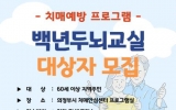 보성 최준규 기자2026. 01.16[시사토픽뉴스]의정부시 보건소 치매안심센터는 치매 예방과 인지기능 유지‧향상을 위한 2026년 상반기 치매예방 프로그램 ‘백년두뇌교실 1기’를 운영한다. 치매예방교실은 60세 이상 시민을 대상으로 교재‧교구를 활용한 인지훈련과 건강생활실천 교육을 통해 치매 위험요인을 사전에 관리하고 건강한 노후생활을 지원하고자 마련했다. 프로그램은 ▲치매예방교육(교재‧교구 활용 인지훈련 및 건강생활실천 교육) ▲소근육 자극 수공예 활동 ▲외부강사 교육(원예치료, 웃음치료, 건강댄스) 등으로 구성됐다. 프로그램은 4개소 치매안심센터(흥선‧호원‧...