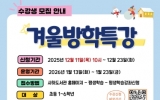 교육 최준규 기자2025. 12.10[시사토픽뉴스]부산광역시립시민도서관(관장 이은경)은 내년 1월 6일부터 31일까지 시민도서관에서 부산 지역 유아 및 초등학생 195명을 대상으로 ‘겨울방학특강’을 운영한다. 이번 특강은 방학 기간 동안 학생들의 문해력·수리력·창의력 기반 학습을 지원하고, 다양한 체험 활동을 통해 기초 학력과 사고력 향상을 돕기 위해 마련했다. 시민도서관은 유아 대상 3개, 초등학생 대상 8개 등 총 11개 프로그램을 운영한다. 유아를 대상으로는 ▲동화야, 겨울방학을 부탁해! ▲음악동화 시간여행 ▲(예비 초1)글쓰기 첫마중을 운영한다. 초등학생...