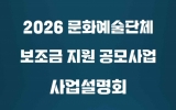 순천 최준규 기자2026. 01.13[시사토픽뉴스]순천시는 오는 16일 오후 3시, 삼산도서관 3층 시청각실에서 순천시 문화예술단체를 대상으로 ‘2026년 순천시 문화예술단체 보조금 지원사업 설명회’를 개최한다고 밝혔다. 이번 설명회는 공모사업의 세부 내용과 중점 추진 방향을 공유하고 지방보조금관리시스템(보탬e)을 통한 신청 방법을 안내하는 한편, 현장에서 질의응답을 통해 단체들의 궁금증을 해소하기 위해 마련됐다. 설명회 참여는 별도의 신청 절차 없이 당일 현장 등록으로 참여할 수 있으며, 사업 내용과 신청방법에 대한 안내를 직접 들을 수 있다, 자세한 사항은...