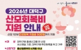 남원시 최준규 기자2026. 01.13[시사토픽뉴스]대전 대덕구가 출산 이후 산모의 건강 회복을 돕기 위한 ‘산모회복비 지원 사업’을 지난해에 이어 올해도 이어간다. 구는 출산 이후 산후조리와 건강관리 과정에서 발생하는 경제적 부담을 줄이기 위해 산모 1인당 최대 50만원을 지원한다고 밝혔다. 지원 대상은 대덕구에 출생신고를 하고 현재 대덕구에 주민등록을 둔 산모로, 출산일로부터 6개월 이내에 신청해야 한다. 지원 항목은 △산후조리원 이용 비용(공공산후조리원은 최대 90% 범위 내 지원) △출산 후 사용한 병·의원 및 한의원 진료비와 검사비 △출산 후 사용한 약국...