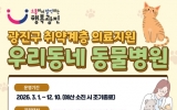 경제 최준규 기자2026. 03.13[시사토픽뉴스]광진구가 경제적 어려움으로 반려동물 진료를 받기 어려운 취약계층을 위해 ‘우리동네 동물병원’을 운영한다. ‘우리동네 펫위탁소’와 함께 취약계층 반려동물을 지원하기 위한 동물 복지 정책이다. 구는 반려동물 1마리당 최대 40만 원 상당의 의료서비스를 제공한다. 필수진료는 기초 건강검진과 필수 예방접종, 심장사상충 예방 등 약 20만 원 상당의 기초 건강관리로 보호자는 1마리당 1만 원만 부담하면 된다. 이후 추가 치료가 필요한 경우 선택진료를 통해 질병 치료와 중성화 수술 등 최대 20만 원까지 지원 받을 수 있으며...