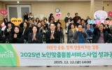 구례 최준규 기자2025. 12.12[시사토픽뉴스]충북 괴산군노인맞춤돌봄센터는 12일 괴산허브센터 2층 대회의실에서 『2025년 노인맞춤돌봄서비스사업 성과공유회』를 개최했다. 이번 성과공유회에는 송인헌 괴산군수를 비롯한 군 관계자, 전담사회복지사, 생활지원사 등 60여 명이 참석했다. 행사에서는 올해 노인맞춤돌봄서비스 추진 성과가 보고되어 돌봄 대상 어르신 지원 현황과 주요 사업 결과가 공유됐으며 촘촘한 지역사회 돌봄체계 구축을 위한 내년도 추진 방향도 논의됐다. 또한 현장에서 우수한 활동을 펼친 생활지원사 7명에게 우수종사자 표창이 수여됐다. 송인헌 군수는 ...