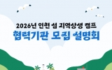 김제시 최준규 기자2026. 03.10[시사토픽뉴스]인천광역시와 인천관광공사는 기업·기관·대학의 ESG 실천과 인천 섬 지역 상생을 연계하기 위한'2026 인천 섬 지역상생 캠프'협력기관 모집 설명회를 3월 27일 오후 2시 상상플랫폼 3층에서 개최한다고 밝혔다. '인천 섬 지역상생 캠프'는 기관의 ESG 경영 실천을 인천 섬 지역의 지속가능한 발전과 연계한 사회공헌 프로그램이다. 참여 기관이 직접 섬을 방문해 ▲해양 환경정화 ▲노후 생활 인프라 개선 ▲지역 주민 교류 및 재능기부 활동 등을 추진함으로써 지역 현안 해결에 기여하고, 기관과 지역이 함께 성장하는 ...
