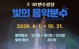 완주군 최준규 기자2026. 04.01[시사토픽뉴스] 광주 동구는 시민과 관광객에게 다양한 볼거리와 도심 속 휴식 공간을 제공하기 위해 마련한 빛과 음악이 어우러진 ‘빛의 음악분수’를 4월부터 10월까지 운영한다고 밝혔다. 5·18민주광장의 대표 야간 경관 콘텐츠인 ‘빛의 음악분수’는 화려한 분수 연출과 음악을 결합한 공연형 분수로, 광주 민주화운동의 중심이자 상징 공간인 5·18민주광장을 찾는 시민과 관광객에게 색다른 볼거리를 선사할 예정이다. 현재 ‘빛의 음악분수’는 4월 정식 가동에 앞서 시스템 점검과 시험 운영을 진행 중이며, 금남로 ‘차 없는 거리’가 시행...
