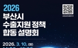 무주군 최준규 기자2026. 03.10[시사토픽뉴스] 부산시는 오늘(10일) 오후 2시 벡스코(BEXCO) 컨벤션홀 205호에서 '2026 부산 수출지원정책 합동설명회'를 개최한다고 밝혔다. 설명회는 시가 주최하고 부산경제진흥원이 주관하며, 수출 지원 유관기관과 지역 수출 중소기업 임직원 등 200여 명이 참석할 예정이다. 이번 설명회는 최근 중동 사태와 미국 관세정책 등으로 국제 통상 환경의 불확실성이 확대되는 가운데, 지역 수출기업들이 변화하는 환경에 효과적으로 대응하고 다양한 수출지원 정책을 활용해 수출 경쟁력을 높일 수 있도록 지원하기 위해 마련됐다....