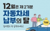 목포 최준규 기자2025. 12.16[시사토픽뉴스]목포시는 2025년도 제2기분 자동차세를 52,132건 82억원을 부과 고지하고 기한 내 납부를 독려하기 위한 홍보활동에 나섰다. 이번 자동차세는 12월 1일 현재 자동차 등록원부상 소유자에게 부과되며, 1월·3월·6월·9월에 연세액 자동차세를 미리 납부한 차량 및 장애인 등 비과세·감면 차량은 부과대상에서 제외된다. 이번 12월에 자동차세 고지서를 받은 납세자는 12월 31일까지 납부해야 한다. 전국 모든 금융기관 및 우체국에서 납부할 수 있으며, 납세고지서가 없어도 금융기관의 CD/ATM기에 체크(신용)카...