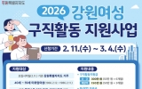 [시사토픽뉴스]강원특별자치도는 2월 11일부터 도내 경력단절 미취업 여성의 경제활동 참여를 확대하기 위해 '여성구직활동 지원사업'을 추진한다. - '여성구직활동 지원사업'은 경력단절 여성의 재취업을 지원하기 위한 사업으로, 도내 여성에게 생애 1회에 한해 신규 참여와 재참여를 각각 지원하며 1인당 최대 450만 원의 구직활동지원금과 취·창업성공금, 취업지원 프로그램을 제공한다. 신청 자격은 모집 시작일인 2월 11일 기준 강원특별자치도에 거주하는 40세 이상 59세 이하(1966.2.12.~1986.2.11.)의 ...