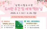 남원시 최준규 기자2026. 03.31[시사토픽뉴스]남원시공공도서관(어울림・시립・어린이청소년도서관)에서 ‘제62회 도서관주간’과 ‘세계 책의 날’을 맞아 오는 4월 1일부터 26일까지 공연, 체험, 전시 등 시민들을 위한 다채로운 문화 프로그램을 운영한다. 이번 행사는 도서관의 가치와 중요성을 알리기 위해 한국도서관협회가 지정한 ‘도서관주간(4월 12일~18일)’과 독서 출판 장려와 저작권 보호를 위해 유네스코가 제정한 ‘세계 책의 날(4월 23일)’의 의미를 되새기고자 마련됐다. 남원시는 이 기간을 포함한 26일까지 각 도서관의 특성을 살린 특별한 문화의 장을 ...