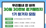 전주시 최준규 기자2026. 02.10[시사토픽뉴스]고양특례시 일산동구보건소는 지역 주민의 기초 체력 증진과 신체활동 활성화를 위해 기획한‘우리동네 한 바퀴 30일 30만보 걷기 챌린지’1기 참가자를 오는 23일부터 모집한다. 우리동에 걷기 챌린지는 시민들이 일상생활 속에서 건강한 생활 습관을 형성할 수 있도록 돕는 자발적 참여형 프로그램이다. 참가자들은 모바일 앱을 활용해 3월 한 달간 누적 걸음 수 30만 보 달성을 목표로 걷기를 실천하게 된다. 걷기챌린지는 단순한 걷기에 그치지 않고, 참여 전후 체성분 검사를 실시해 체중, 골격근량, 신체 점수 등 객관적인 건...