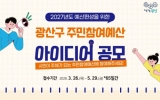 전주시 최준규 기자2026. 03.31[시사토픽뉴스]광주 광산구가 지역 문제를 해결할 시민의 아이디어를 담은 주민참여예산 사업 제안을 공개 모집한다. 공모는 내년도 주민참여예산 중 3억 5,000만 원 규모의 주민참여형 사업을 대상으로 한다. 생활 불편 해소, 안전사고 예방, 시민 복리 증진 및 삶의 질 향상, 마을 현안 해결, 지역발전 등 광산구 지역 전체를 대상으로 하는 제안을 받는다. 단, 광산구 지역에 속하지 않은 사안, 중장기적‧대규모 예산 투자가 필요한 사업, 특정인 또는 단체의 이익을 위하거나, 갈등 소지가 있는 사업 등은 제외된다. 광산구 주민, 광산구...