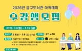 순창군 최준규 기자2026. 02.10[시사토픽뉴스]김제시 금구도서관은 지역 주민들의 자기 계발과 문화 향유 기회를 확대하기 위해 2026년 금구도서관 아카데미 수강생을 오는 3월 6일까지 선착순 모집한다고 밝혔다. 이번 강좌는 디지털 교육부터 감성적인 예술, 인문학 특강까지 다양한 분야로 구성됐다. 주요 강좌는 ▲실생활에 활용할 수 있는‘생활 속 AI활용’과‘귀로 보는 건강관리, ▲우리동네의 풍경을 직접 펜과 물감으로 담아내는‘어반스케치’, ▲미술사 흐름으로 배우는‘명화이야기’, ▲그림책을 통해 인지 능력을 높이고 정서적 교감을 나누는‘시니어 인지발달 책놀이’,...