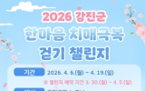 강진 최준규 기자2026. 03.31[시사토픽뉴스] 강진군 보건소(치매안심센터)가 치매예방에 대한 관심을 높이고 건강 생활 실천을 독려하기 위해 오는 4월 6일부터 19일까지 14일간 '한마음 치매극복 걷기챌린지'를 운영한다. 이번 행사는 군민이 한마음으로 치매 극복을 기원하고 치매에 대한 부정적인 인식을 개선해 치매 친화적 지역사회 환경 조성하기 위해 마련됐다. 챌린지는 모바일 걷기 플랫폼인 ‘워크온’ 앱을 통해 진행되며 강진군민이라면 누구나 참여할 수 있다. 참여방법은 스마트폰 앱스토어에 '워크온' 설치 및 회원가입 후 ‘강진군 치매 극복 걷기’ 챌린지 참...
