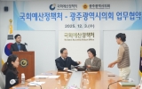 광주광역시 최준규 기자2025. 12.03[시사토픽뉴스]광주광역시의회는 12월 3일 오전10시 30분 국회의정관에서 국회예산정책처와 재정 분석 분야 협력을 위한 업무협약(MOU)을 체결했다. 이날 협약식에는 광주광역시의회 신수정 의장과 박남언 사무처장, 국회예산정책처 지동하 처장과 윤성민 기획관리관, 김형진 기획예산담당관 등 양 기관 주요 관계자들이 참석했다. 이번 협약은 광주광역시의회가 국내 예산분석 최고 전문기관인 국회예산정책처와의 협력을 통해 지방예산분석 및 감시 전문성을 강화하고, 시민 생활과 직결된 정책 검증을 더욱 정밀하게 수행하기 위해 체결했다. 양...
