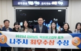 나주 최준규 기자2025. 12.02[시사토픽뉴스]전라남도 나주시가 불법광고물 정비 강화, 건전한 광고문화 확산, 폐현수막 재활용체계 구축 등 전방위적인 도시환경 개선 노력을 인정받아 ‘2025년 전라남도 옥외광고업무 평가’에서 ‘최우수상’을 수상했다. 나주시(시장 윤병태)는 이번 평가에서 폐현수막 재활용 시범사업 추진, 올바른 광고문화 기반 조성, 불법광고물 정비 등 여러 주요 항목에서 고르게 높은 점수를 받으며 최우수 기관으로 선정됐다고 2일 밝혔다. 시는 폐현수막 재활용을 위한 협약 체결, 집하장 설치 등 재활용 인프라를 구축하고 폐현수막 활용을 촉진하는 생...