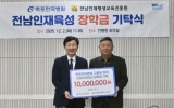 전라남도 최준규 기자2025. 12.02[시사토픽뉴스]전라남도는 고광일 목포한국병원 원장은 2일 전남인재평생교육진흥원에 전남인재육성 장학금 1천만 원을 기탁했다고 밝혔다. 전남인재평생교육진흥원 회의실에서 열린 기탁식에는 고광일 원장, 범희승 전남인재평생교육진흥원장 등이 참석했다. 1988년 개설된 목포한국병원은 20개 진료과와 600병상을 갖춘 전남 서부권역 대표 종합병원이다. 2025년 보건복지부 ‘포괄 2차 종합병원 지원사업’에 선정되며 지역 필수의료를 책임지는 핵심 의료기관으로 자리매김했다. 특히 지난 2021년부터 지역 인재 육성을 위해 2천만 원의 장학...