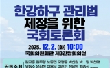경제 최준규 기자2025. 12.02[시사토픽뉴스]인천광역시는 국회의원실과 한강하구 생태환경 통합관리협의회가 공동 주최한 ‘한강하구관리법 제정을 위한 국회 토론회’가 12월 2일 오전 10시, 국회의원회관 제3간담회의실에서 개최됐다고 밝혔다. 이번 토론회에는 허종식 국회의원을 비롯한 국회의원, 환경부, 해양수산부, 인천시 등 유관기관 관계자, 시민단체, 전문가 등 50여 명이 참석했으며 한강하구의 미래를 논의했다. 유정복 인천광역시장은 환영사를 통해 한강하구가 가진 생태·환경·경제·안보적 중요성을 깊이 인식하며 “한강하구 보전은 더 이상 미룰 수 없는 과제”이며,...