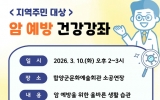 전라남도 최준규 기자2026. 03.06[시사토픽뉴스]함양군보건소는 2026년‘암 예방의 날(3.21.)’을 맞이하여 오는 3월 10일 지역주민을 대상으로 암 예방과 조기검진의 중요성을 알리기 위한 건강강좌를 개최한다. 이번 건강강좌는 지역주민의 건강증진과 암 예방 인식 향상을 위해 마련됐으며, 암의 주요 발생 원인과 예방을 위한 올바른 생활습관의 중요성 등을 중심으로 진행될 예정이다. 특히 강의는 경상국립의대 강윤식 교수가 강사로 나서 일상생활 속에서 실천할 수 있는 암 예방 수칙과 함께 정기적인 검진을 통해 암을 조기 발견과 치료의 중요성, 국가암검진 참여의 필요...