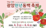광양 최준규 기자2026. 03.30[시사토픽뉴스] 광양동백축제추진위원회는 4월 3일부터 4일까지 이틀간 옥룡면 옥룡사지 동백숲 일원에서 제9회 광양천년동백축제를 연다. 이번 축제는 천년의 역사를 간직한 옥룡사지 동백숲을 배경으로 공연과 체험, 주민 참여 행사를 마련해 봄철 지역 관광 활성화에 힘을 보탤 예정이다. 올해로 9회를 맞는 이번 축제는 ‘천년의 유산 동백으로 피어나다’를 주제로 마련됐으며, 축제는 동백숲의 자연경관과 지역 문화를 함께 즐길 수 있도록 공연, 체험, 전시, 주민 참여 프로그램 등으로 구성된다. 축제 첫날인 4월 3일에는 다례제를 시작으...