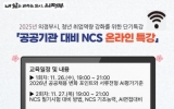정치 최준규 기자2025. 10.30[시사토픽뉴스]의정부시는 취업에 어려움을 겪고 있는 청년 취업준비생들을 위한 취업역량 강화 프로그램 ‘공공기관 대비 NCS 특강’의 참여자를 모집한다. 참여 대상은 의정부시에 주소를 둔 19세 이상 39세 이하 청년 가운데, 공공기관이나 공기업 취업을 희망하는 대학생 및 취업준비생이다. 이번 특강은 비대면 실시간 온라인 강의로 11월 26일과 27일 2일간 각 1회씩 2차시로 진행한다. 내용은 ▲2026년 공공채용 변화 포인트 ▲공공기관 8대 분야 소속기관 채용 특징 ▲공공기관 서류전형 AI 평가 기준 ▲NCS 필기 시험 유...