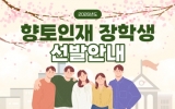 전라북도 최준규 기자2026. 03.30[시사토픽뉴스] 전북특별자치도평생교육장학진흥원이 도내 출신 대학생들의 안정적인 학업 전념을 지원하기 위해 ‘2026년도 전북특별자치도 향토인재 장학생’ 선발에 나선다. 선발인원은 총 200명으로, 선정된 학생에게는 1인당 100만원의 장학금이 지급된다. 진흥원은 지역 균형을 고려해 서울 소재 4년제 대학 재학생 50명과 지방 소재 4년제 및 전문대학 재학생 150명을 구분하여 선발할 계획이다. 신청 자격은 공고일(2026.3.24.) 기준 6개월 전부터 보호자의 주민등록이 전북특별자치도에 되어 있어야 한다. 또는 보호자의 등...