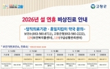 고창군 최준규 기자2026. 02.09[시사토픽뉴스]고창군이 설 연휴(14~18일) 군민의 건강을 지키고, 의료 이용 불편을 최소화하기 위해 비상진료체계를 가동한다. 지역응급의료기관인 고창종합병원은 응급환자 발생을 대비해 24시간 응급실을 운영한다. 보건기관 11개소, 당직 병·의원 26개소, 약국 22개소가 일자별 지정 운영할 계획이다. 연휴 14일(토요일)에는 대부분의 관내 의료기관에서 오전에 정상 진료가 이뤄진다. 고창군보건소를 비롯한 보건진료소(10개소)는 연휴 기간동안 오전 9시부터 오후 6시까지 정상 진료하며, 권역별 진료지역을 나누어 민간 의료기...