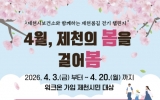 여행/맛집 최준규 기자2026. 04.03[시사토픽뉴스]제천시보건소가 4월 3일부터 20일까지 18일간 '4월, 제천의 봄을 걸어봄'걷기 챌린지를 운영한다. 챌린지는 모바일 걷기 앱‘워크온(WalkOn)’을 통해 제천시민 누구나 참여할 수 있다. 이번 챌린지는 ‘제천의 봄’을 주제로 시민들이 아름다운 지역의 봄을 만끽하며 걸을 수 있도록 기획됐다. 또한 더 많은 시민이 쉽게 참여할 수 있도록 난도를 낮춘 미션을 선정해, 누구나 손쉽게 달성할 수 있게 했다. 미션은 ‘기간 내 총 7만 보 걷기’와 ‘제천의 봄 풍경 사진 인증’으로, 모두 완료한 시민 전원에게는 5,00...