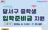 경제 최준규 기자2026. 03.29[시사토픽뉴스] 대구 달서구는 다자녀 가정의 교육비 부담을 덜기 위해 2026년도 중학교 입학생을 대상으로 입학준비금 지원 사업을 시행하고, 오는 4월 1일부터 7월 31일까지 신청을 받는다. 이번 사업은 중학교 입학 시기에 필요한 교재와 학용품 등 초기 비용 부담을 줄이기 위해 추진되며, 달서구에 거주하는 둘째 이상 자녀를 둔 가정을 대상으로 한다. 지원 대상은 2026년도 중학교 입학생 중 둘째 이상 자녀로, 입학일부터 신청일까지 보호자(부 또는 모)와 함께 달서구에 주민등록이 되어 있고 동일 세대를 유지하고 있어야...
