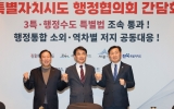 정치 최준규 기자2026. 02.08[시사토픽뉴스]대한민국특별자치시도 행정협의회(대표회장 강원특별자치도지사 김진태) 시‧도지사는 2026년 2월 8일 서울 콘래드 호텔에서 긴급 회동, 간담회를 개최했다. 이날 모임은 휴일임에도 불구하고 대표회장인 김 지사의 제안에 따라 이루어졌으며, 최근 국회와 정치권의 ‘3특·행정수도 특별법’에 대한 법안심사 지연과 행정통합 소외 우려에 대응방안을 논의했다. 최근 국회는 2월 회기에 3특‧행정수도특별법을 배제한 채 ‘통합 특별법안’만 심사하기로 하면서, 홀대와 차별의 논란을 가져왔다. 이에 따라 2월 특별법 통과와 광역 행정...