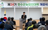 장수군 최준규 기자2026. 03.05[시사토픽뉴스]장수군은 4일 농업기술센터 대강의실에서 교육생 80여 명이 참석한 가운데 ‘제24기 장수군 농업인대학’ 개강식을 개최하고 본격적인 교육 운영에 들어갔다. 이날 개강식은 최훈식 장수군수의 격려사를 시작으로 교육 일정과 운영 방향 안내, AI 활용 농업 경영 및 마케팅 특강 순으로 진행됐으며 변화하는 농업 환경에 능동적으로 대응하기 위한 교육의 출발을 알렸다. 올해 농업인대학은 △사과반 △두릅반 △신규농업인 기초영농반 등 3개 과정으로 운영되며 3월부터 11월까지 총 33회, 142시간에 걸쳐 체계적인 교육이 진행...