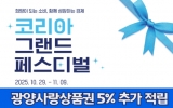 광양 최준규 기자2025. 10.29[시사토픽뉴스]광양시는 전국 단위 소비진작 행사인 ‘코리아 그랜드 페스티벌(Korea Grand Festival)’ 기간(2025. 10. 29.~11. 9.) 동안 광양사랑상품권 할인율을 한시적으로 18%로 상향한다고 밝혔다. ‘코리아 그랜드 페스티벌’은 국무조정실, 기획재정부, 행정안전부, 산업통상자원부와 행정안전부, 문화체육관광부 등 관계 부처가 공동으로 추진하는 국가대표 소비축제다. 행사 기간에는 △지역사랑상품권 및 디지털온누리상품권 특별할인 △상생소비복권 (20억 원 규모) 신규 시행 △농·축·수산물·생필품 특별할인 ...